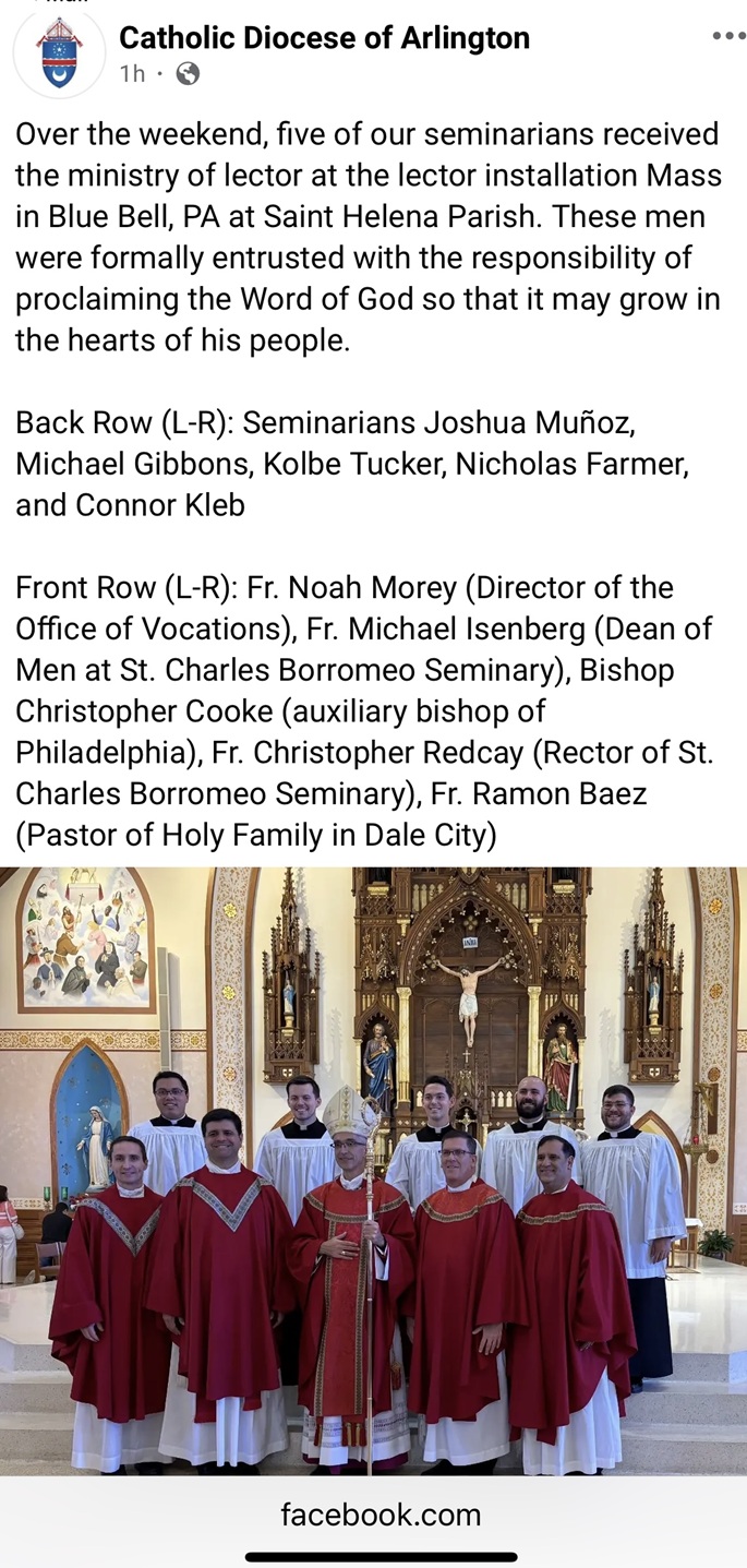 September 20, Seminarians receive the Ministry of Lector, St Helena Parish (click here), Blue Bell, PA (click here for full photo).